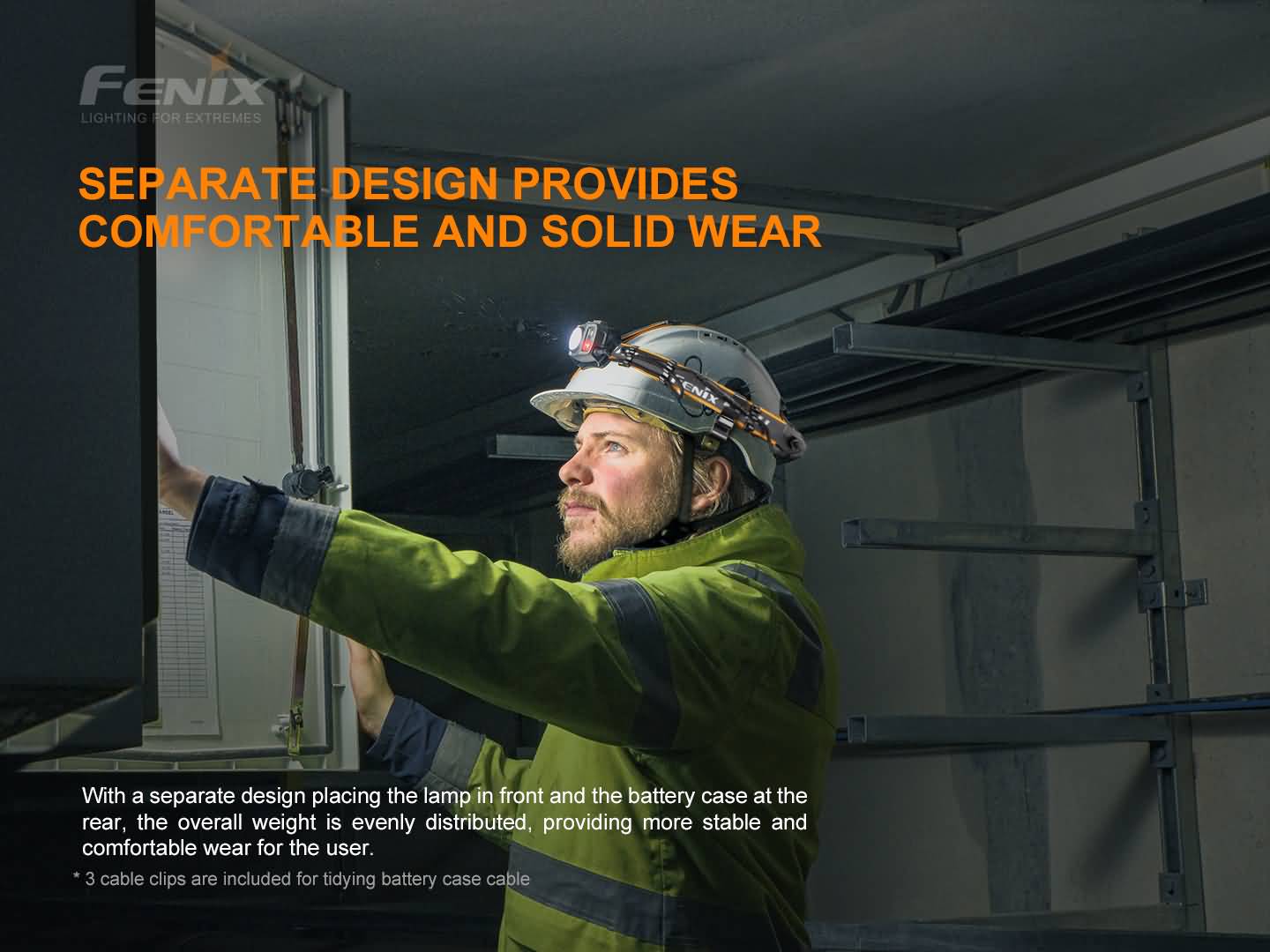 << PACKAGE INCLUDE >> 1 x Fenix HP25R V2 headlamp 1 x Fenix ARB-L21-5000 21700 li-ion battery_5,000 mAh 1 x USB-C charging cable 4 x Helmet attachment hook 3 x Cable clip 1 x Spare o-ring 1 x User manual 1 x Warranty card |