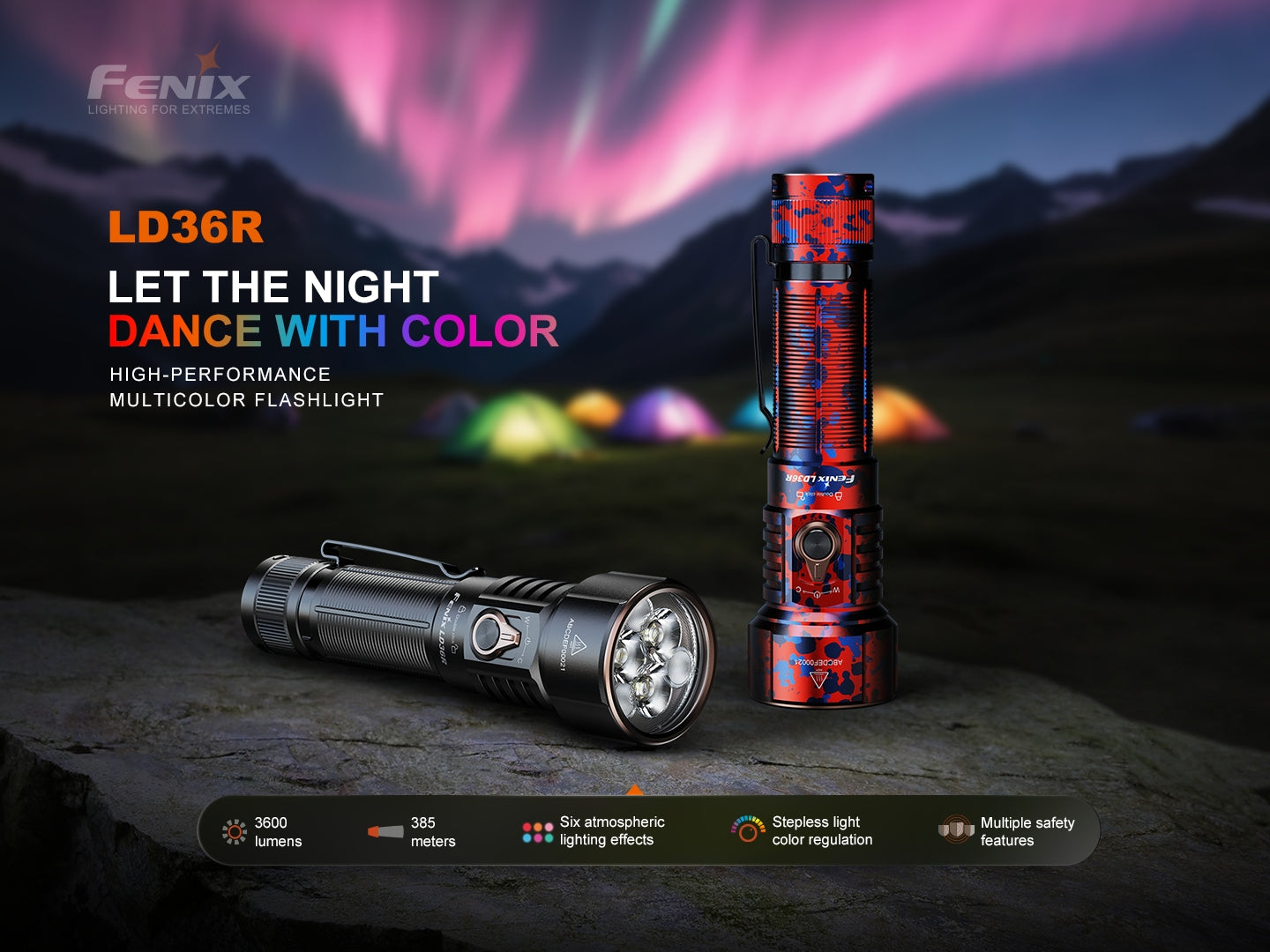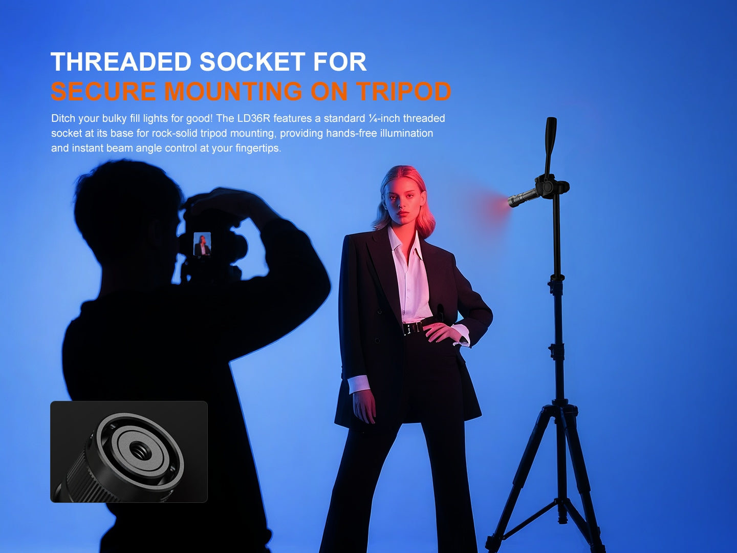 << PACKAGE INCLUDE >> 1 x Fenix LD36R flashlight 1 x Fenix ARB-L21-6000 21700 battery 1 x AOD-04 diffuser tip 1 x Nylon holster 1 x Wrist lanyard 1 x Spare o-ring 1 x USB-C charging cable 1 x Warranty card 1 x User manual |