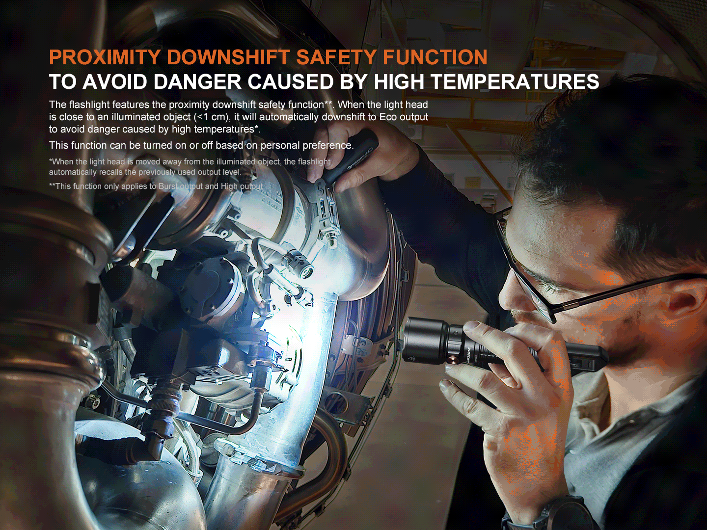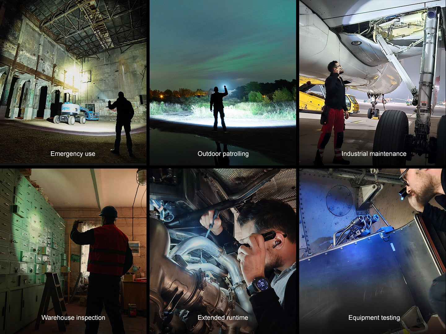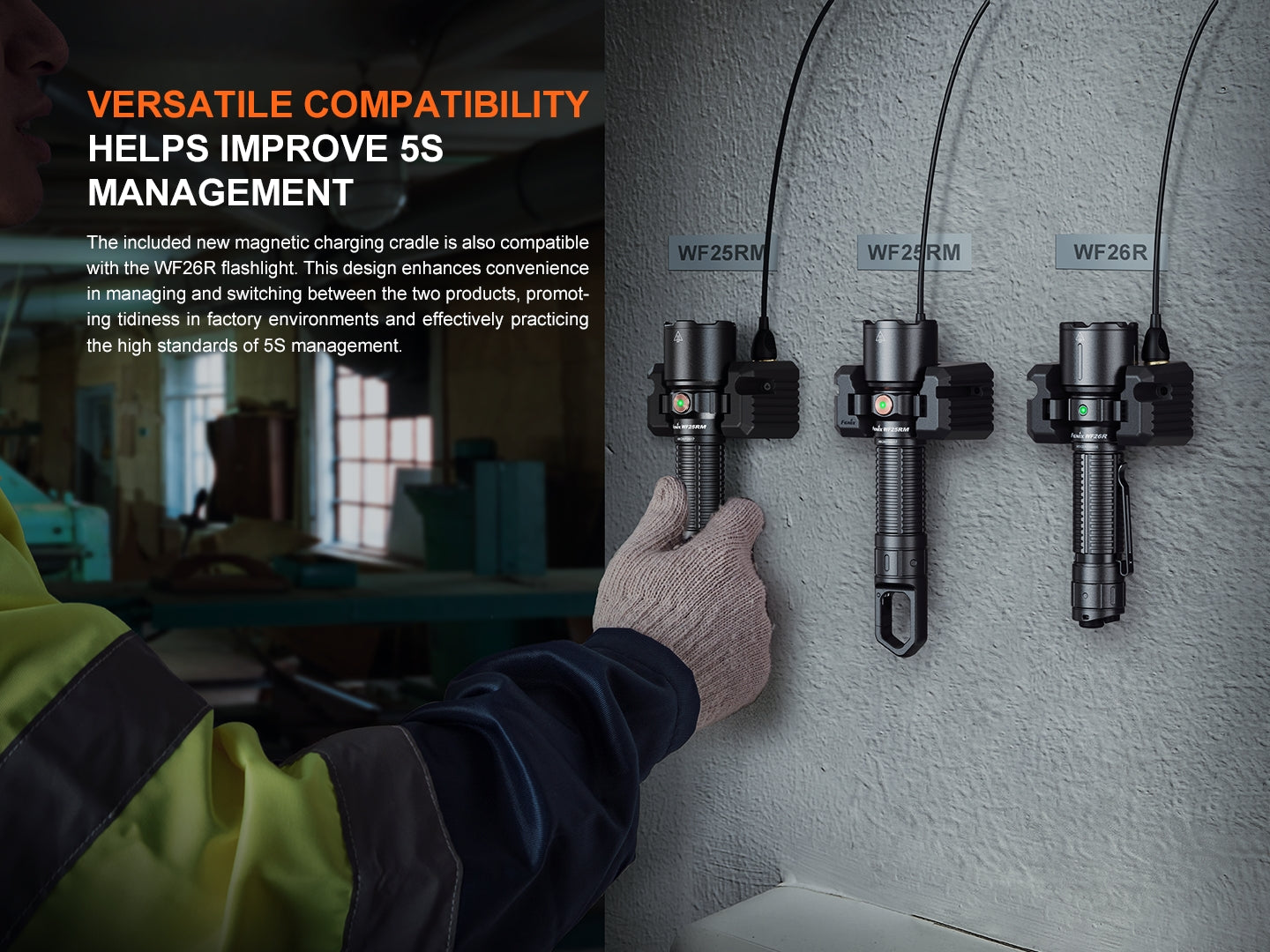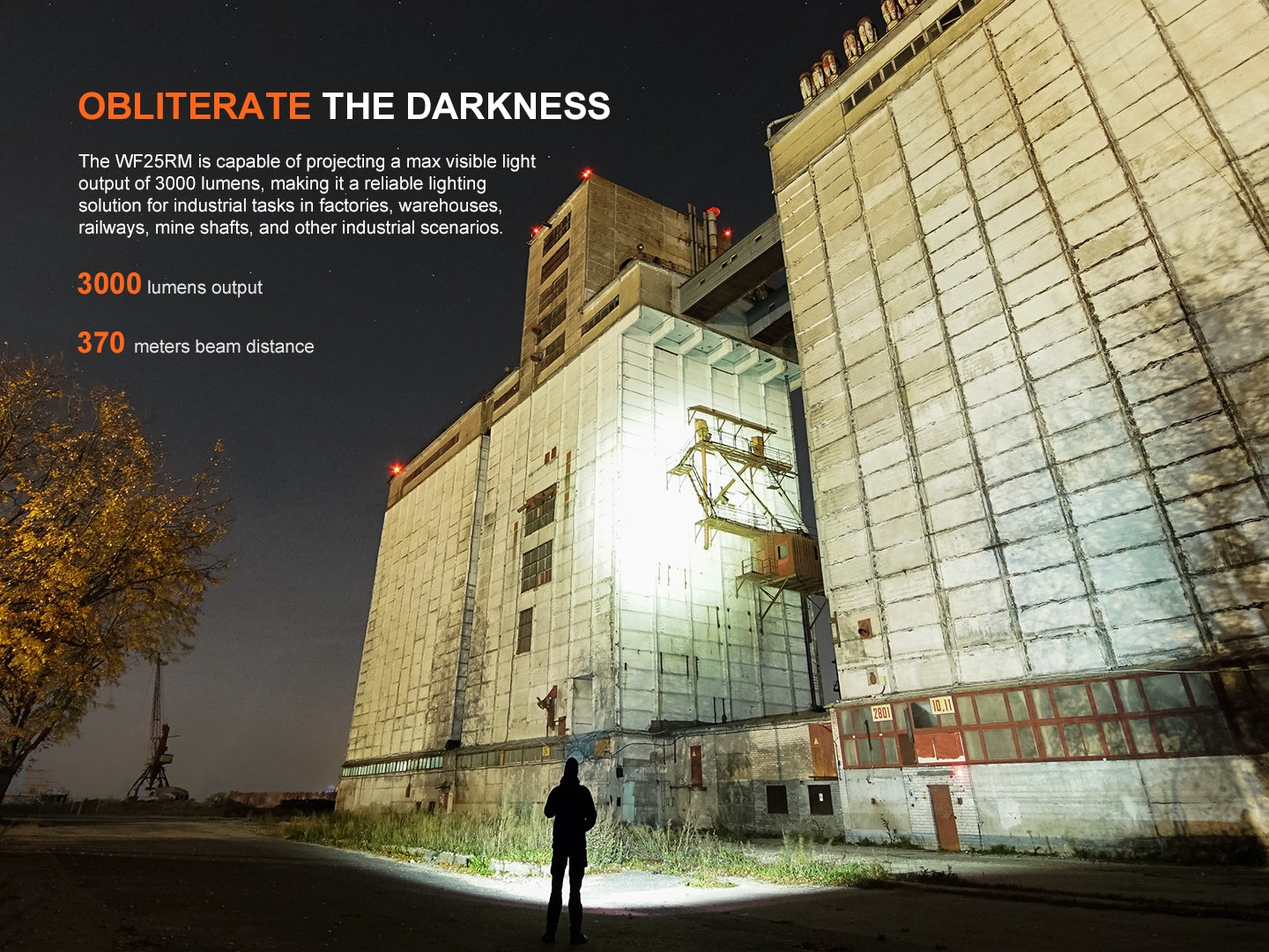 << KEY FEATURES >> ✅ 3,000 lumens max output illuminate up to 370 meters; ✅ Secondary UV light helps eliminate potential industrial accidents (i.e.: leak detection); ✅ Multiple charging options - charging cradle, magnetic charging port on flashlight & USB-C charging port on battery; ✅ Magnetic charging cradle can be firmly fixed on wall or table for convenient charging; ✅ Carabiner style tail cap for attaching WR25RM to reinforcing bars or ropes; ✅ Proximity sensor auto downshift the brightness when an object is near; ✅ Multiple protections : thermal regulation, battery overcharge, battery over-discharge & battery reverse polarity protections; ✅ Scratch-resistant & hardened lens help to preserve the quality of beam; ✅ Made of durable aerospace aluminum alloy that endure impact; ✅ IP68 rated waterproof protection & passed 1 meter drop test. |